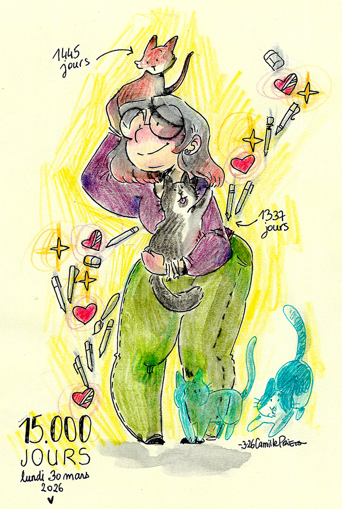 Du coup je vous dis à mercredi ! Et je vous laisse avec juste un p'tit dessin ce lundi, mais un p'tit dessin pour mes 15k jours de vie quand même !