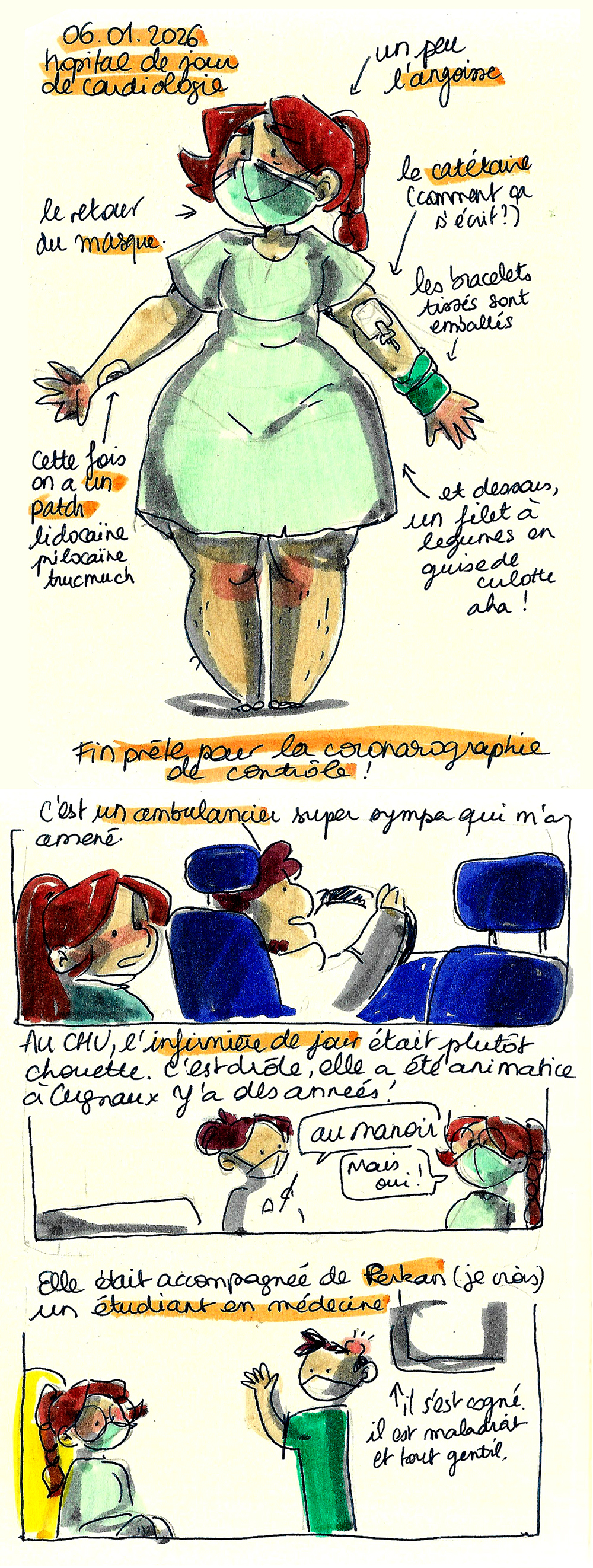 Le premier mardi de janvier j'ai donc eu une journée en hôpital de jour pour faire une coronarographie pour voir où est ce qu'on en était de cette histoire.