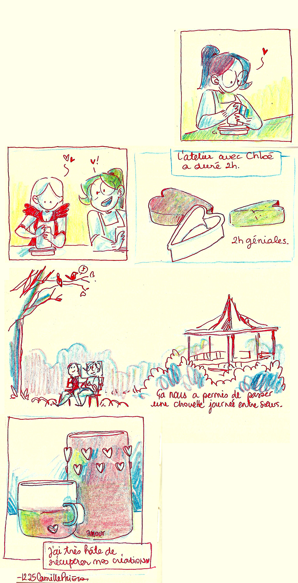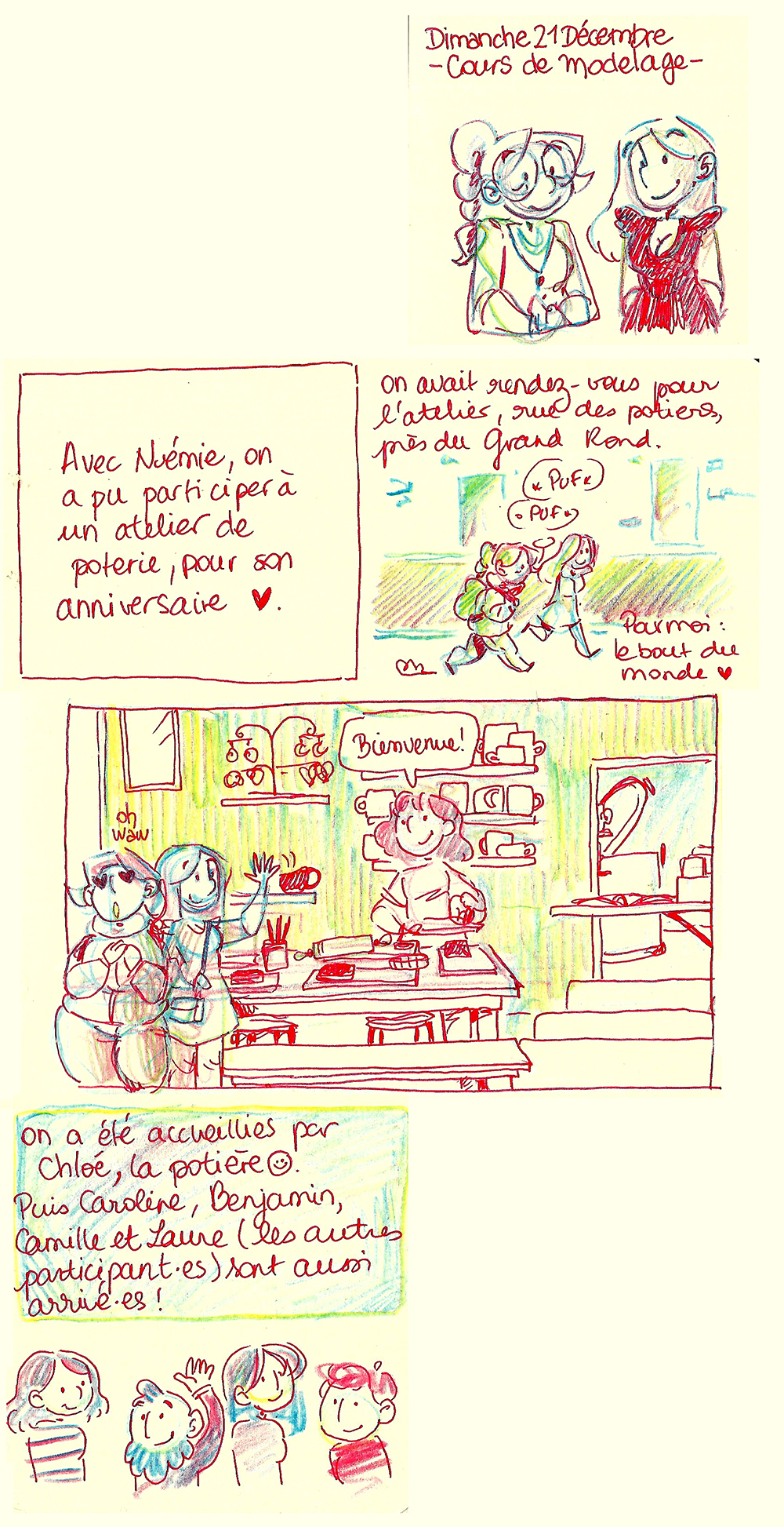 Elles sont toutes réalisées aux crayons de couleurs, à l'aquarelle et au stylo gel.
